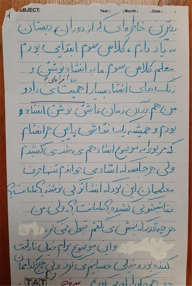بدترین خاطرهایی که از دوران دبستان به یاد دارم، کلاس سوم ابتدایی بودم و معلم کلاس سوم ما به انشاء نوشتن و زنگهای انشاء بسیار اهمیت میداد.
